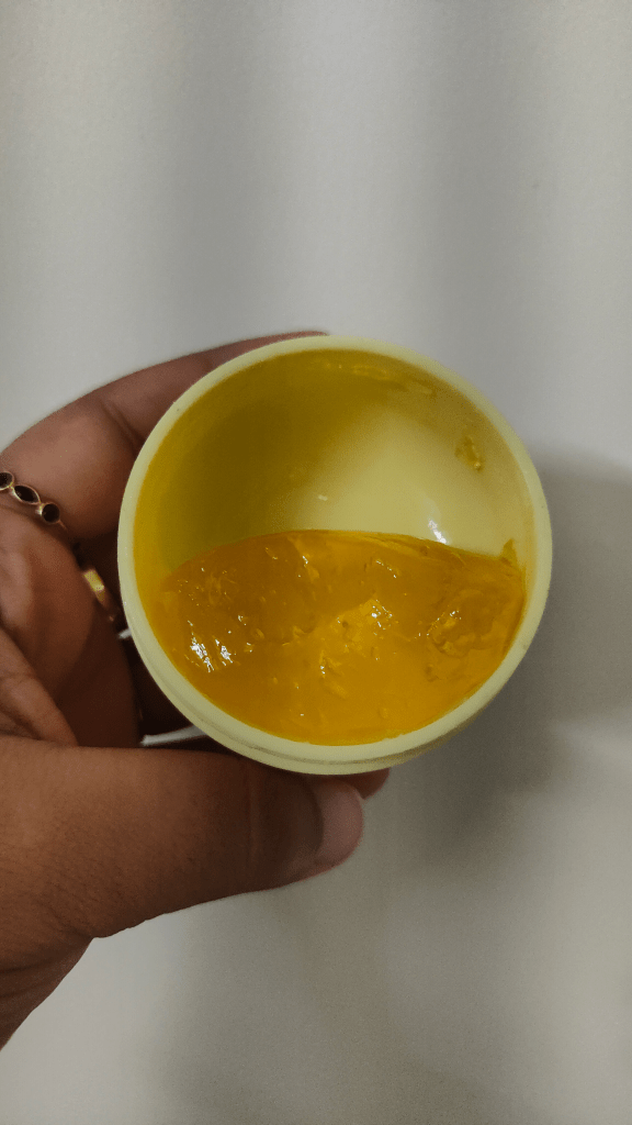 It has a smooth, creamy, jelly-like consistency—kind of like lemon curd but for your face (do not eat, please). It’s lightweight, spreads evenly, and doesn’t drip or dry tight.